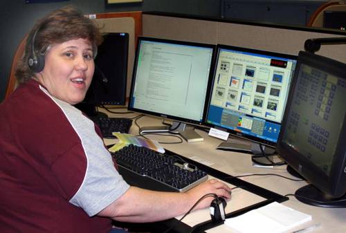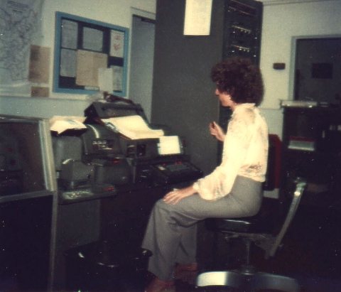 Judy Radiker at the TLSU (teletype line switching unit)